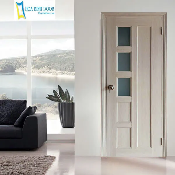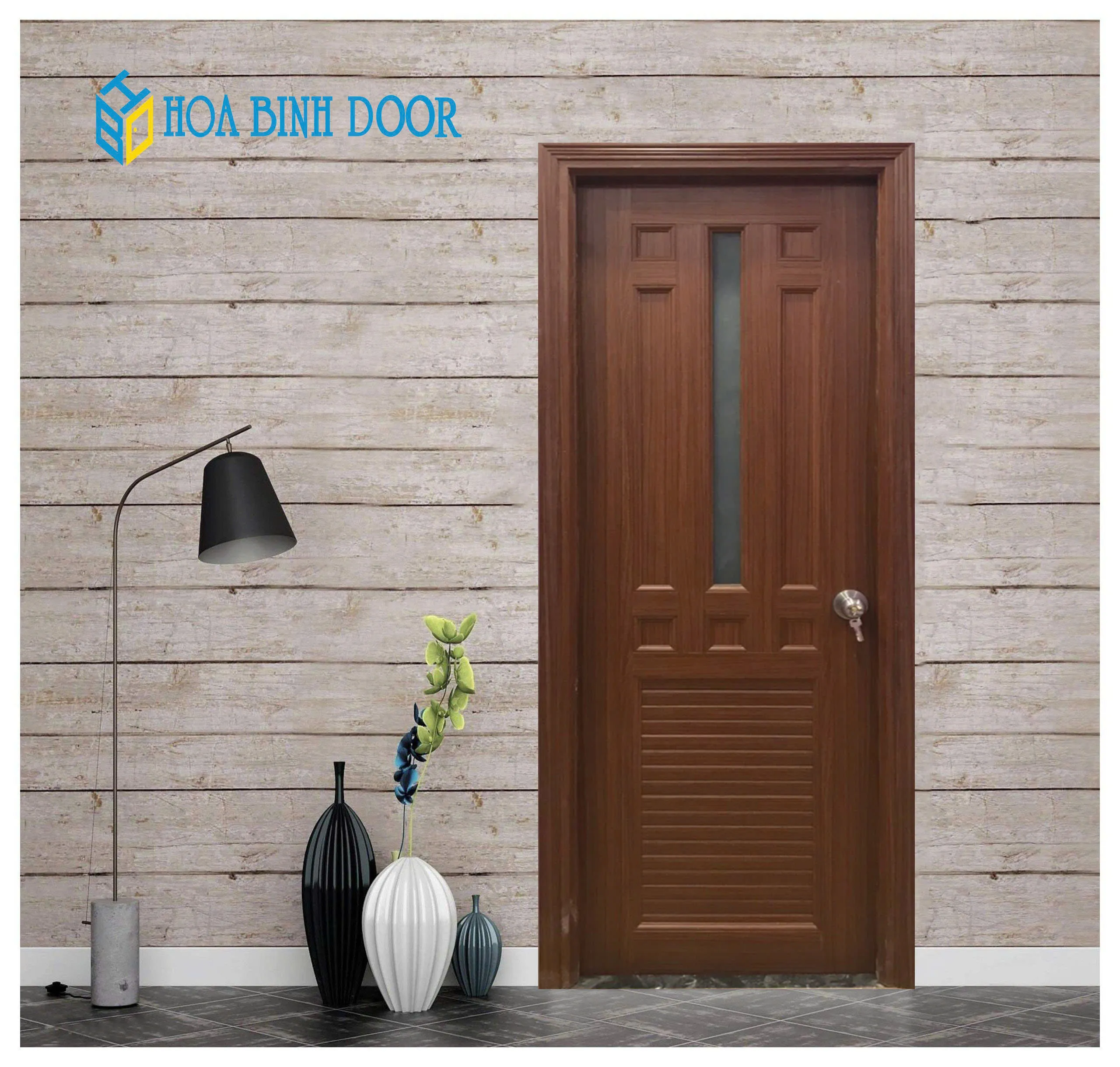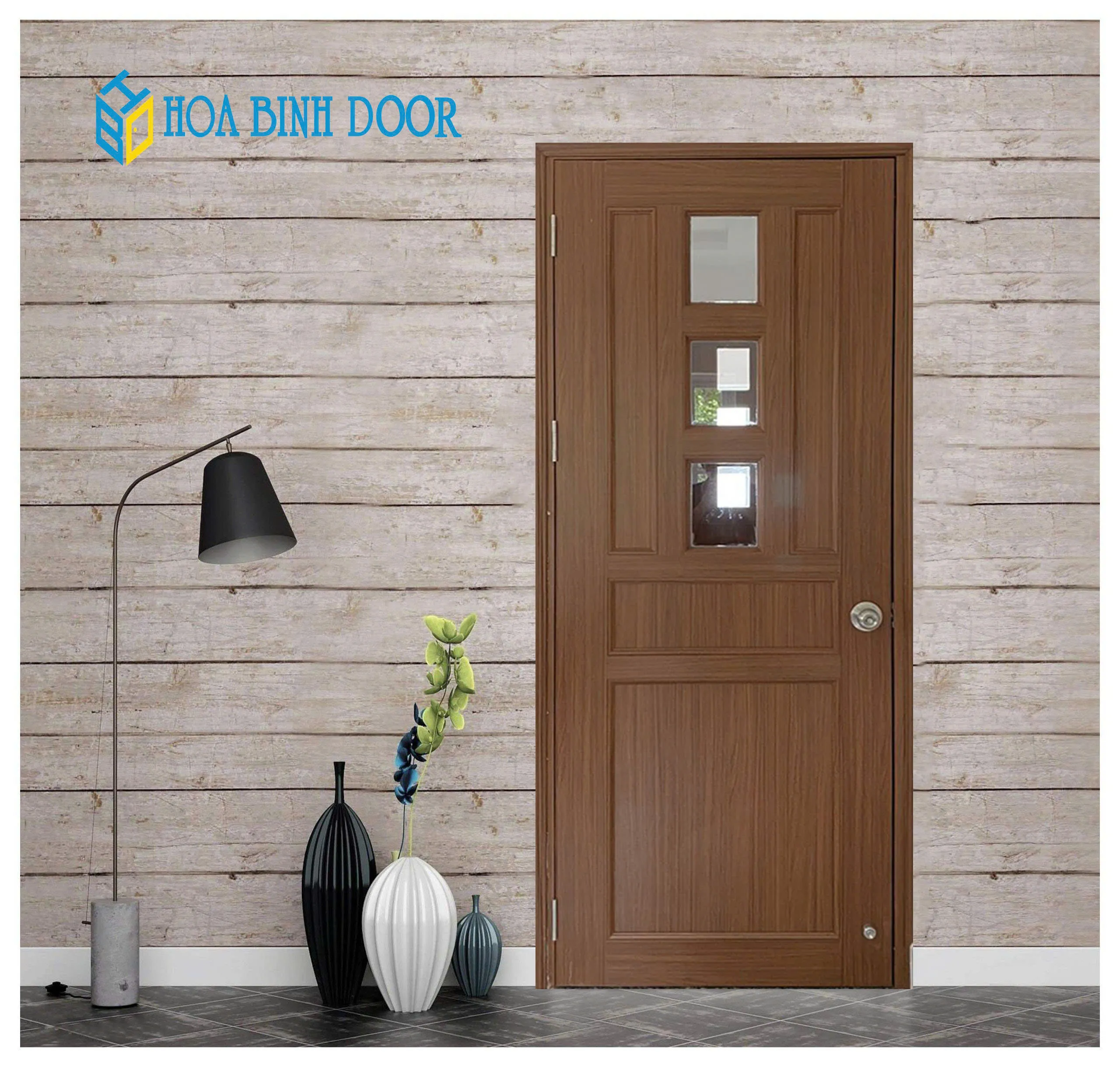 - Mẫu mã đa dạng: Có nhiều kiểu dáng, màu sắc và họa tiết vân gỗ khác nhau, phù hợp với nhiều phong cách nội thất. Có cả loại cửa đúc nguyên khối và cửa ghép thanh với các ô kính, ô lá sách tùy chọn.