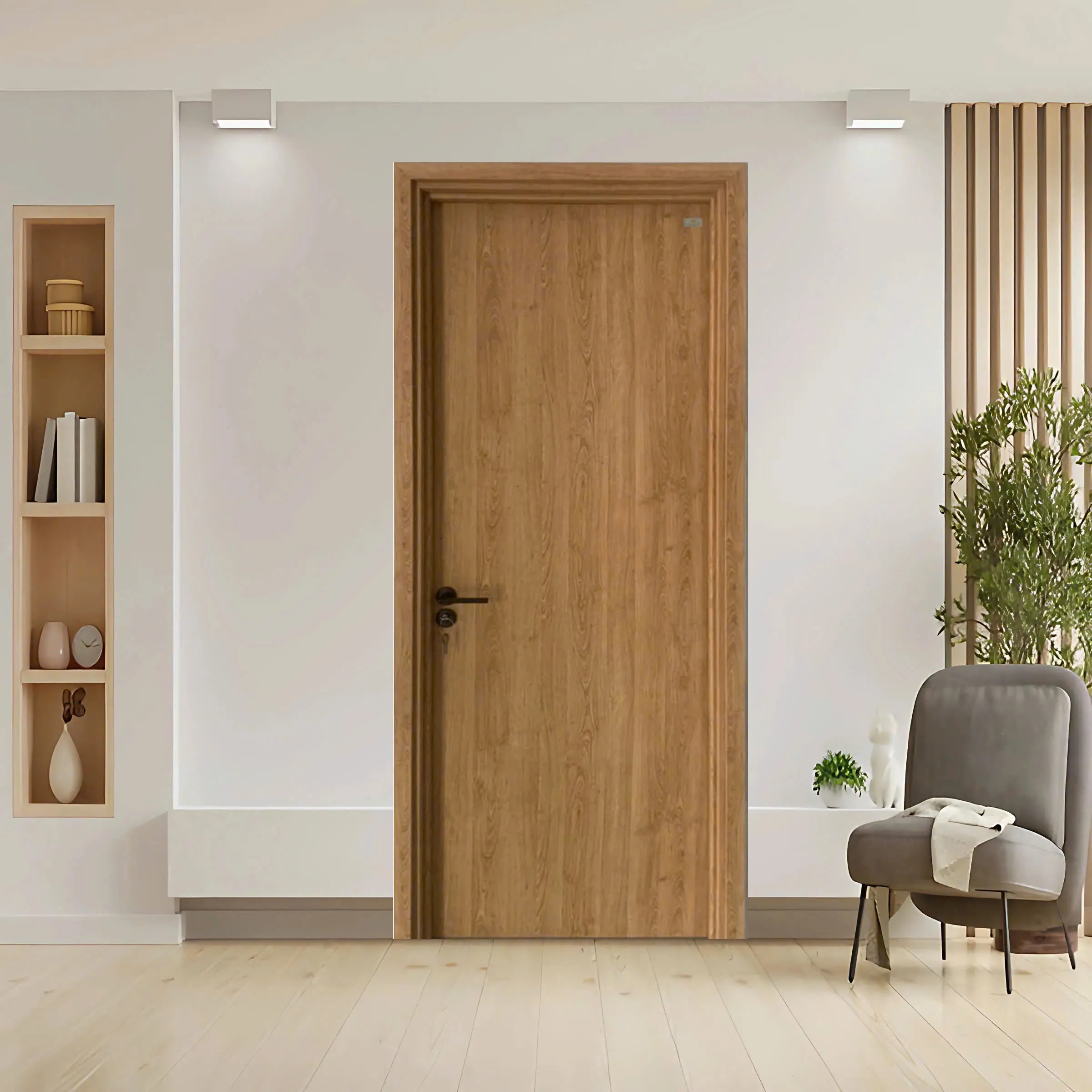 - Độ cứng và độ ổn định cao: Cấu trúc vững chắc của cửa composite mang lại khả năng chống va đập và cạy phá tốt hơn so với một số loại cửa truyền thống.