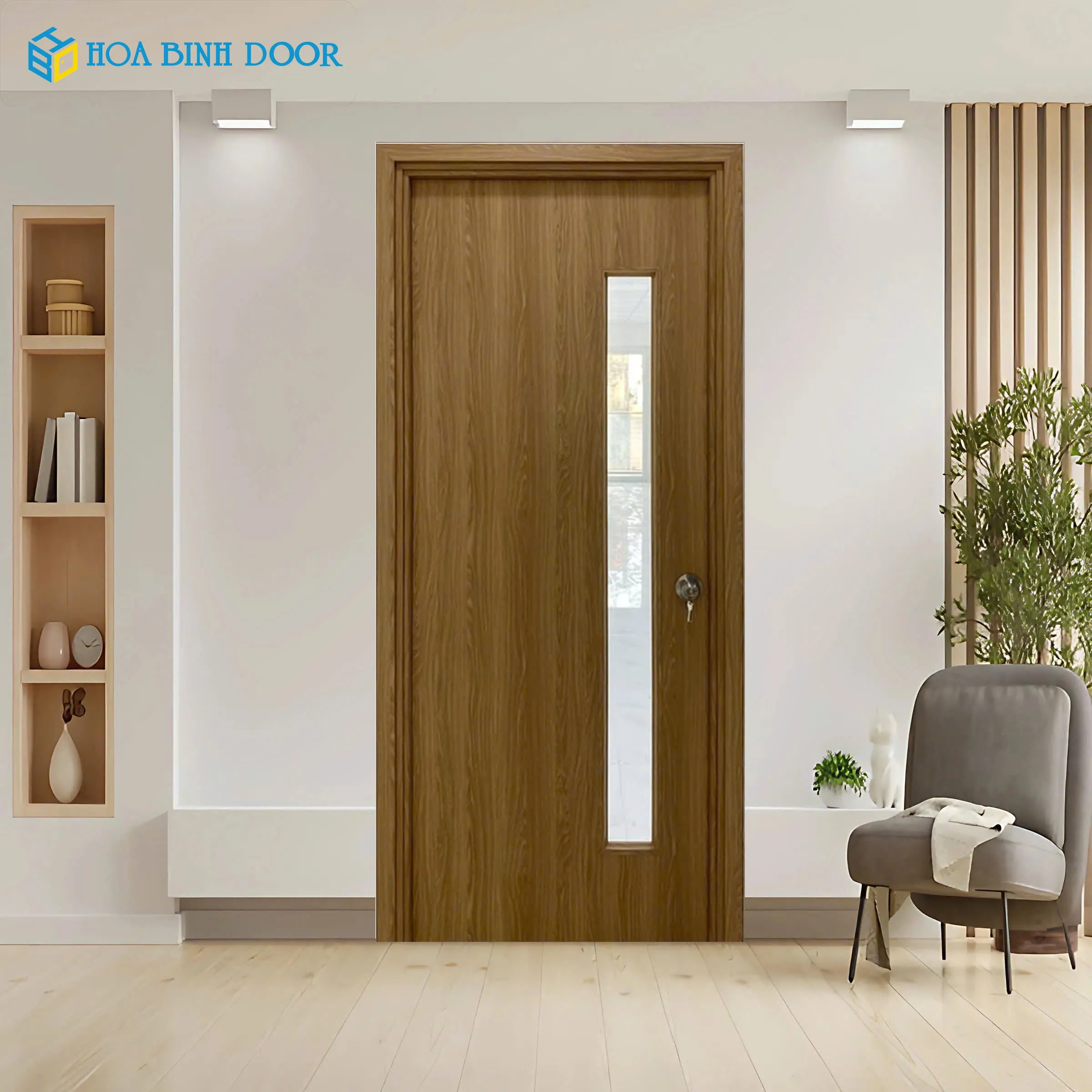 Cửa gỗ công nghiệp HDF veneer KD.1B-OAK